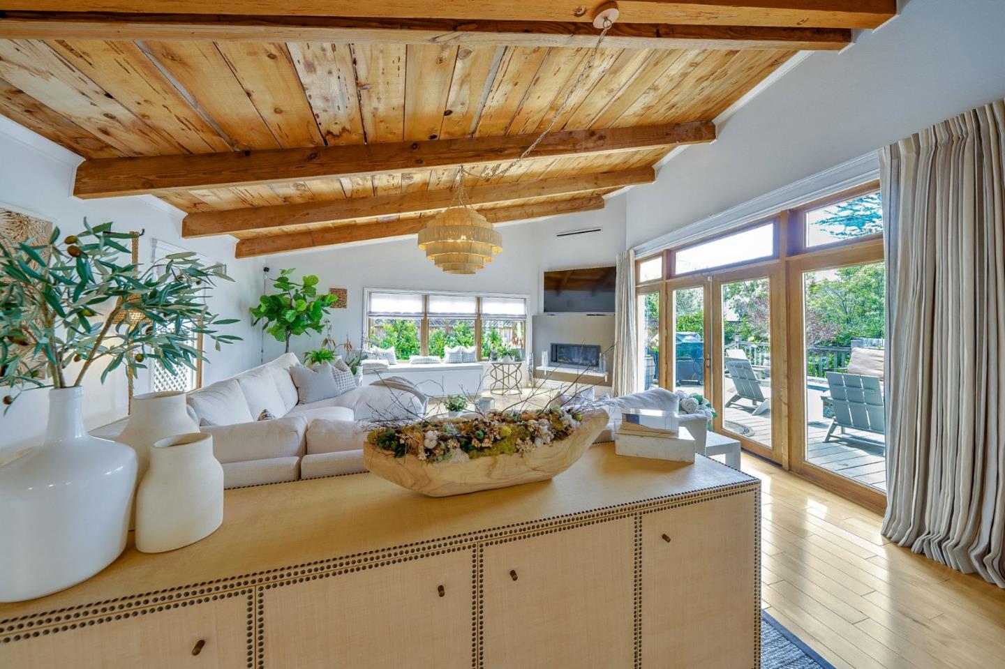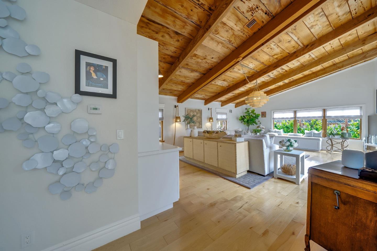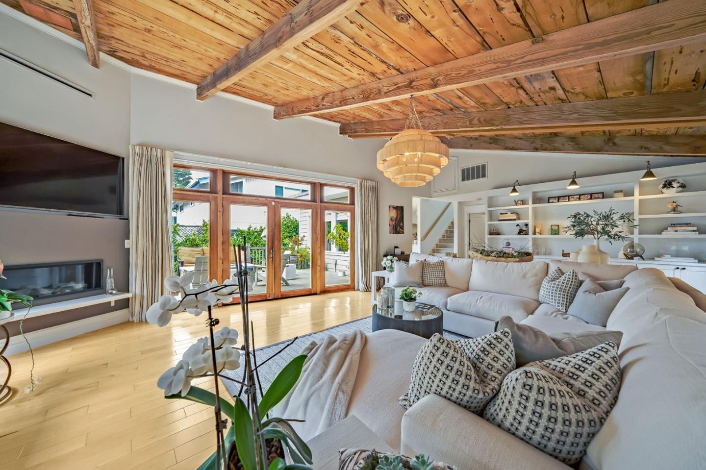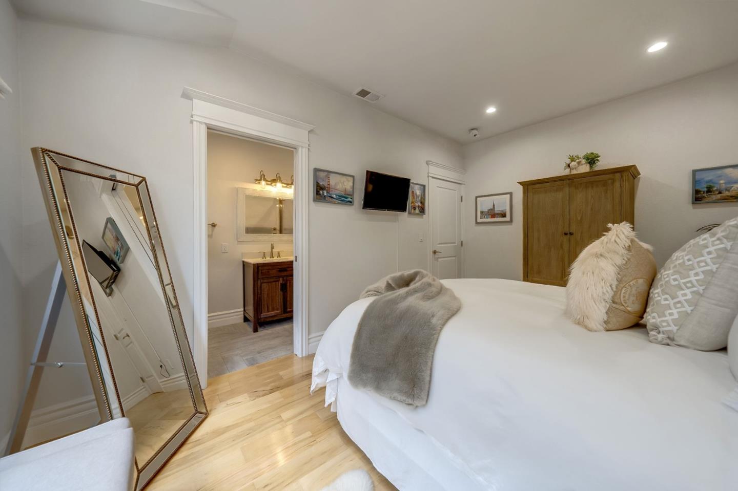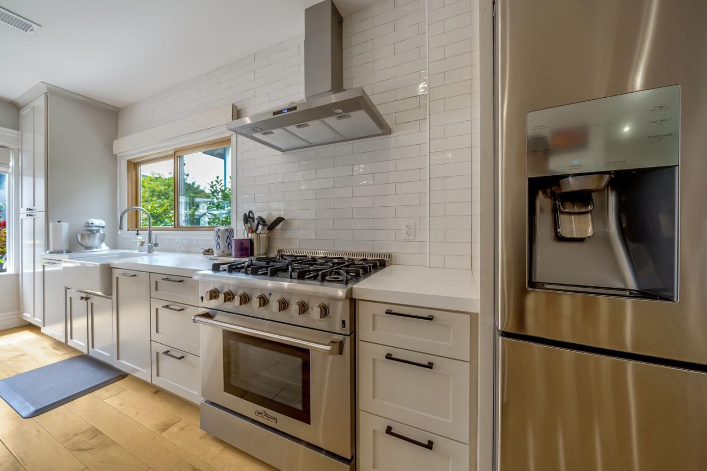 This exceptional Coastside Contemporary Masterpiece is located just steps from the beach the Coastal Trail in Miramar. The home is artfully constructed and features a welcoming entry that leads into the dining area and a kitchen with ample cabinetry, a stunning oversized island, modern finishes, and built-in appliances. The adjacent living room is oversized and light-filled, opening onto the patio through large glass French doors. There is also a bedroom and full bath located on the lower floor. The second floor hosts the third bedroom and the primary bedroom, both with ensuite bathrooms and beautiful ocean views from the veranda. The patio is perfect for entertaining with an oversized fire pit and gorgeous landscaping. This home also features a hot tub for unwinding, and has electrics for EV needs. The location offers easy access south to downtown Half Moon Bay and Hwy 92, and you can easily cycle north to Pillar Point Harbor with its restaurants, surfing, kayaking, and boating.